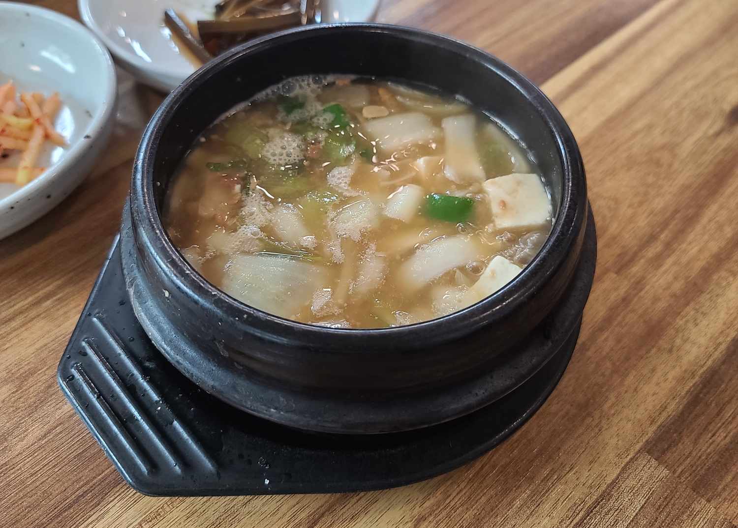 된장찌개도 기본 반찬에 속해있는 메뉴입니다. 옛날 된장으로 만들어 깊은 맛이 납니다. 고깃집에서 먹을 수 있는 쌈장섞인 된장과는 맛이 달라요. 밥이랑 먹으면 어머니께서 차려준 밥상을 먹는 듯한 느낌이 듭니다.