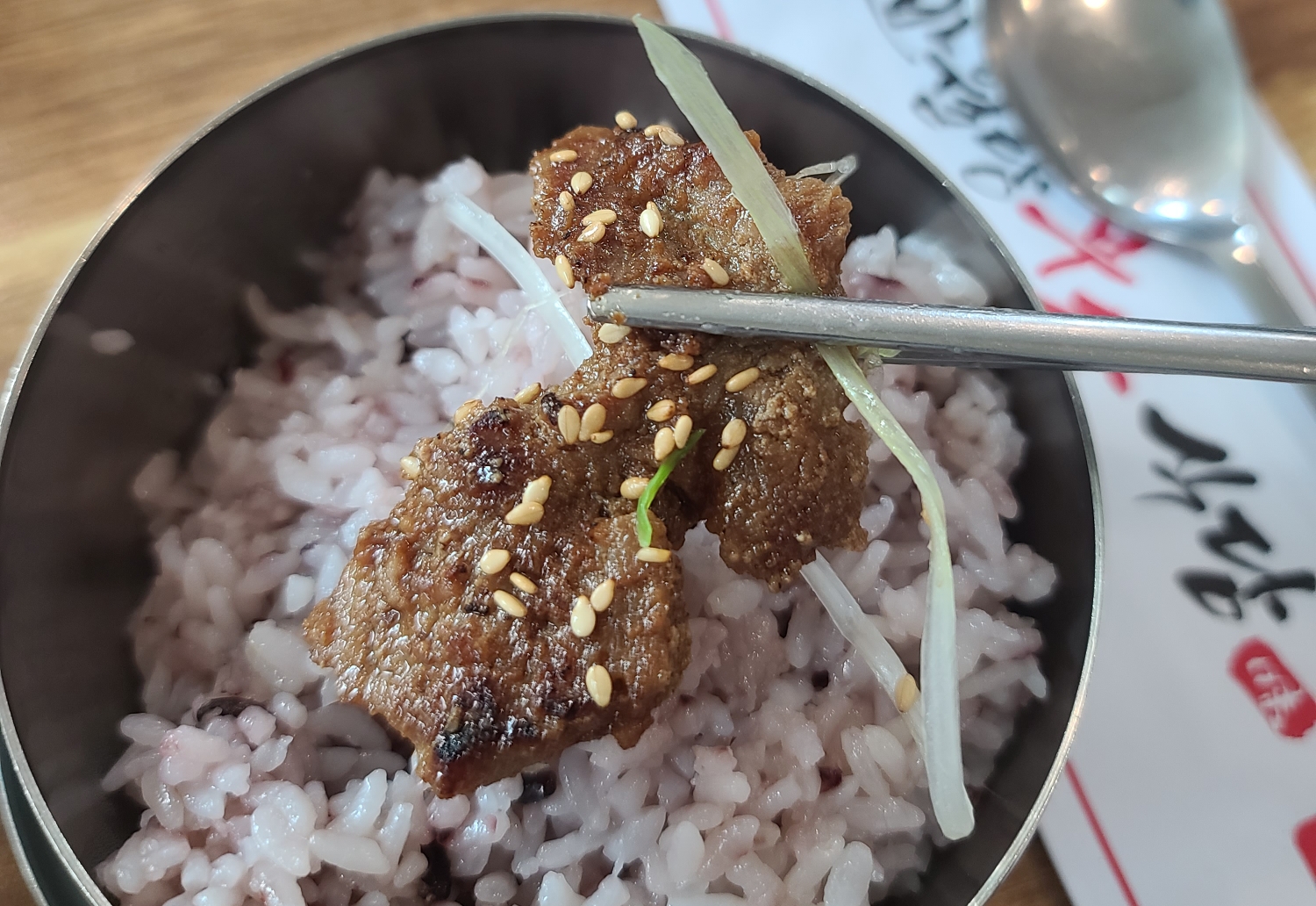 석갈비는 달달한 간장에 절인듯한 맛이 납니다. 달짝지근한 갈비를 생각하시면 되고요. 약간 짠맛이 더해져 단짠단짠으로 먹을 수 있습니다. 밥과 함께 먹으니 밥 1공기를 금새 해치울 수 있었어요.