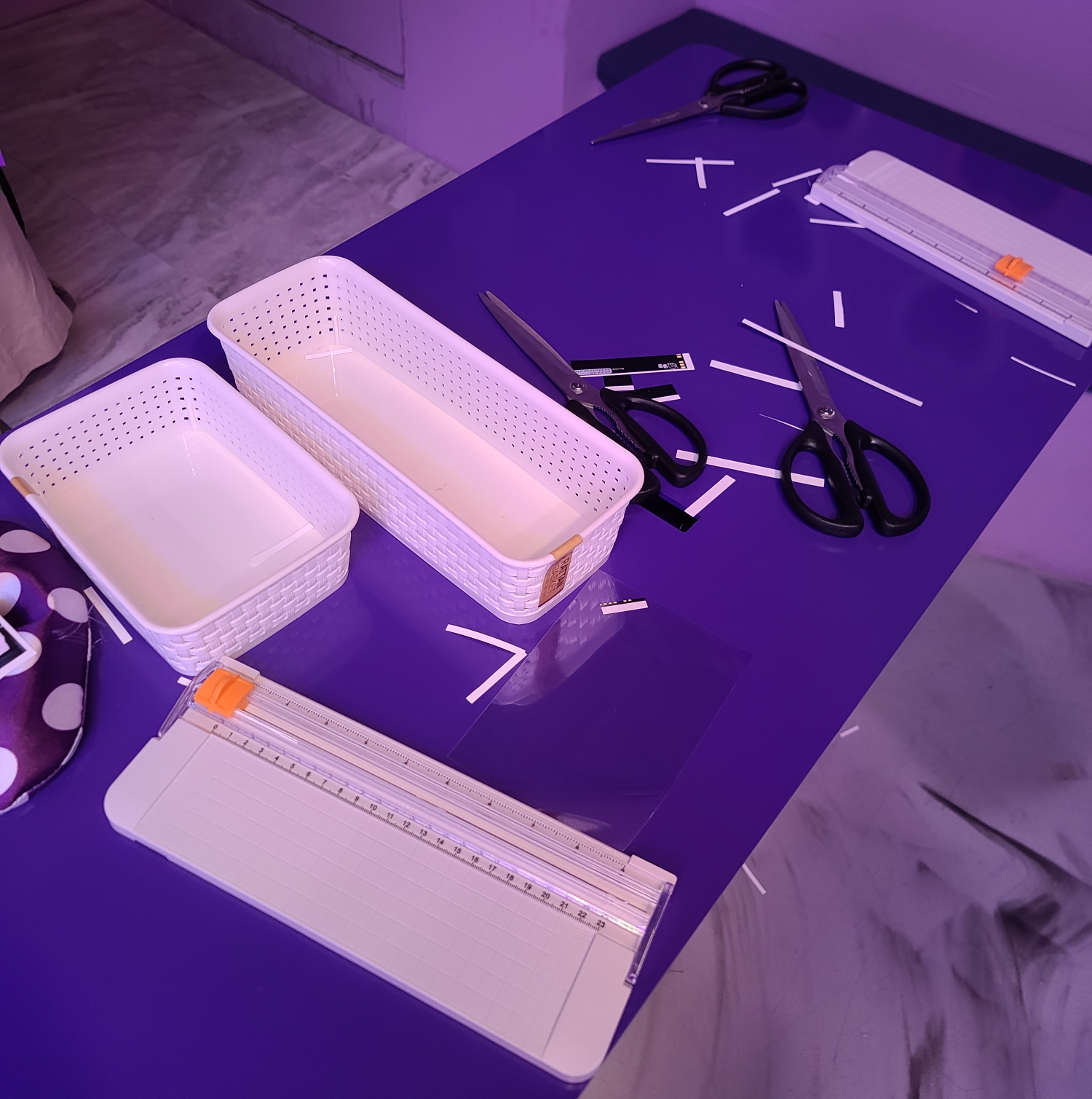 촬영을 완료한 뒤에는 사진기 뒤편의 편집 장소에 들어가 사진에 글씨를 쓰거나 메시지를 남길 수 있습니다. 그리고 편집된 사진은 곳곳에 비치되어 있는 가위와 칼을 이용해 직접 잘라주면 됩니다.