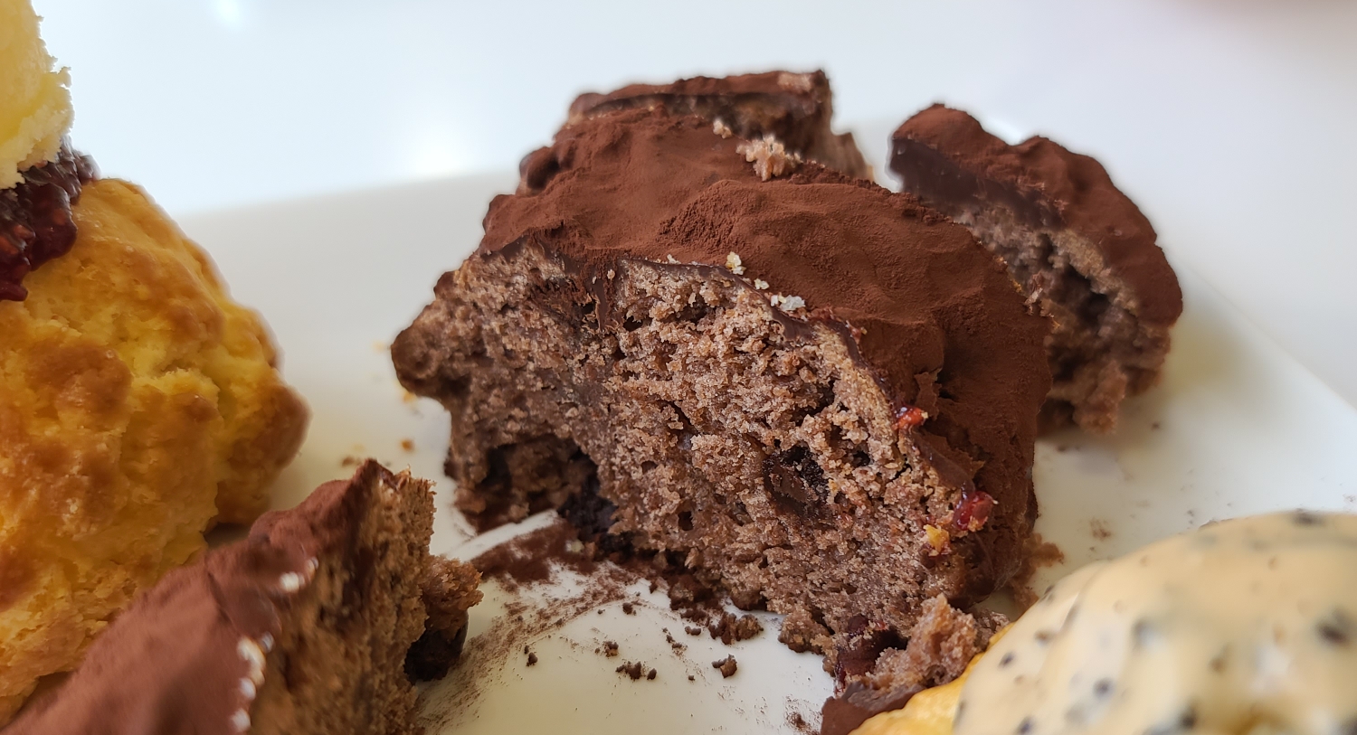 라즈베리 잼 위에 크림이 올라가있습니다. 이거 맛있어요. 비스킷 반죽이 먹다보면 조금 느끼한데 이 느끼함을 잡아주더라고요.