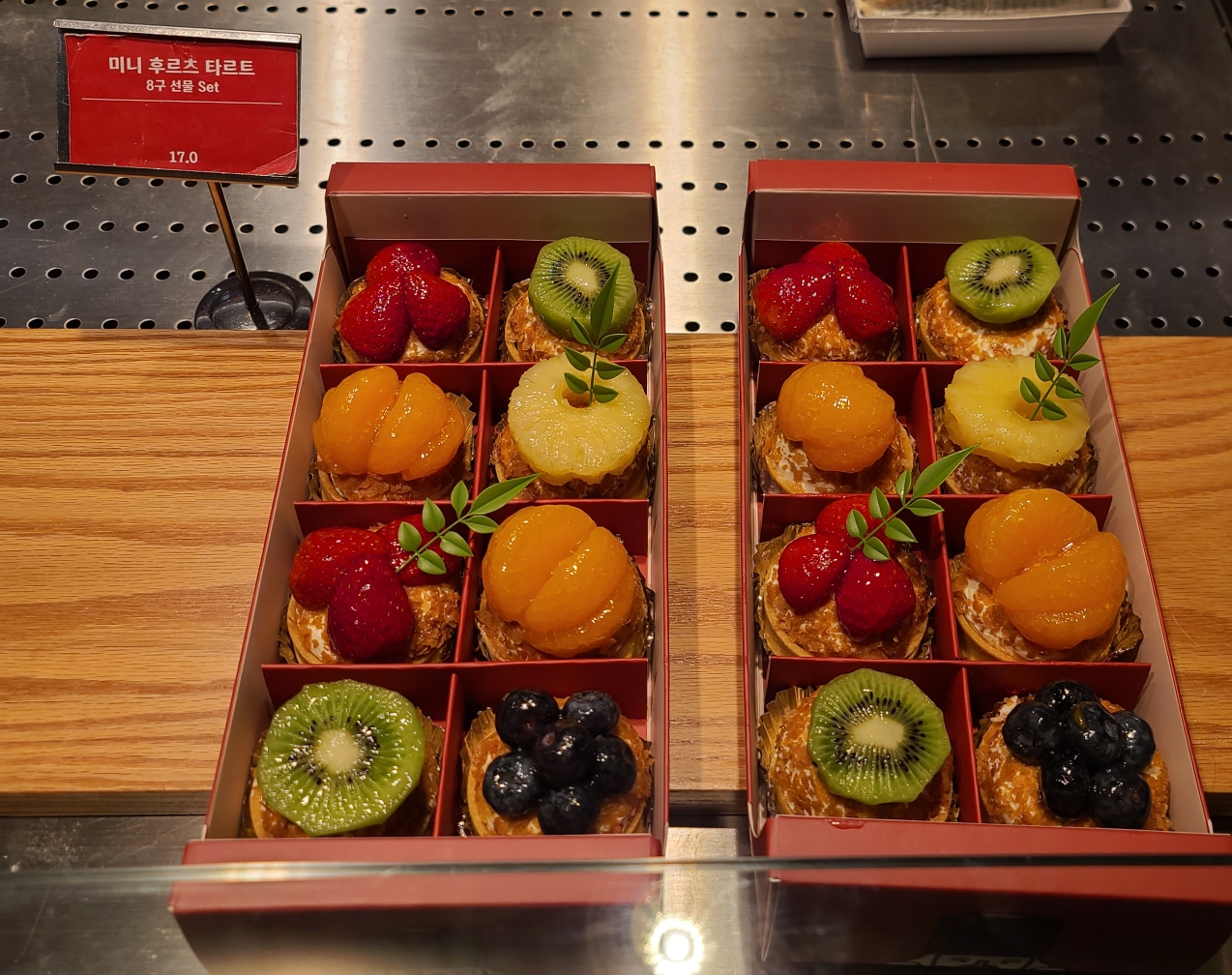 미니 딸기 케이크와 초코타르트 완제품 등등 냉장이 필요한 케이크들은 냉장 코너에 있었습니다.