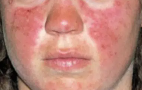 가장 특징적인 증상은 콧잔등 부위의 나비 모양의 홍반이 나타나는 것과 햇빛 과민성입니다. 루푸스병의 80%에서 뺨의 발진이 나타납니다.