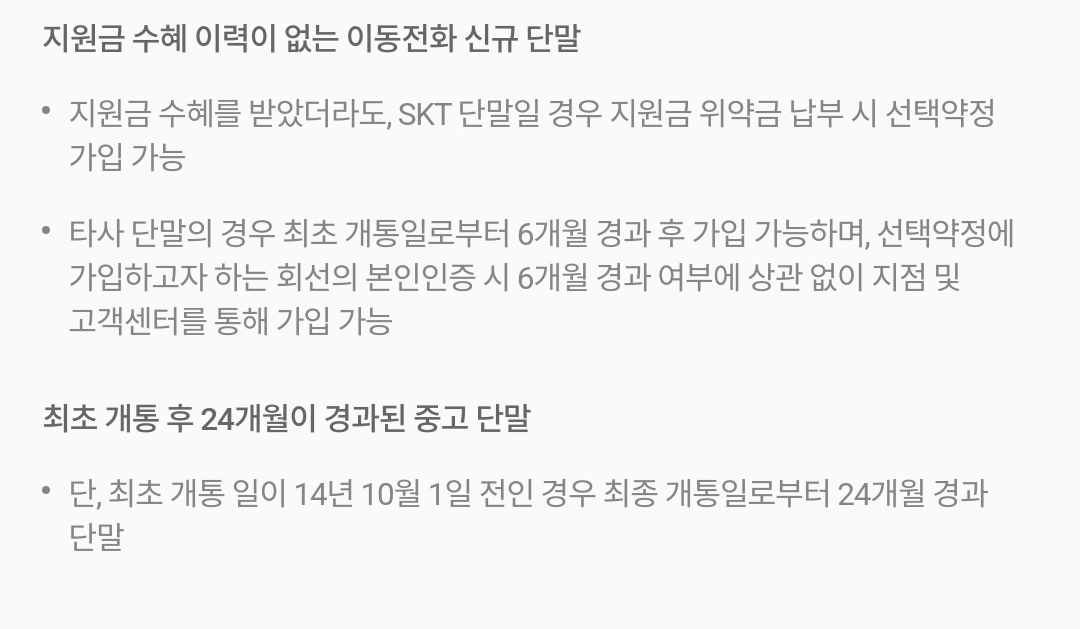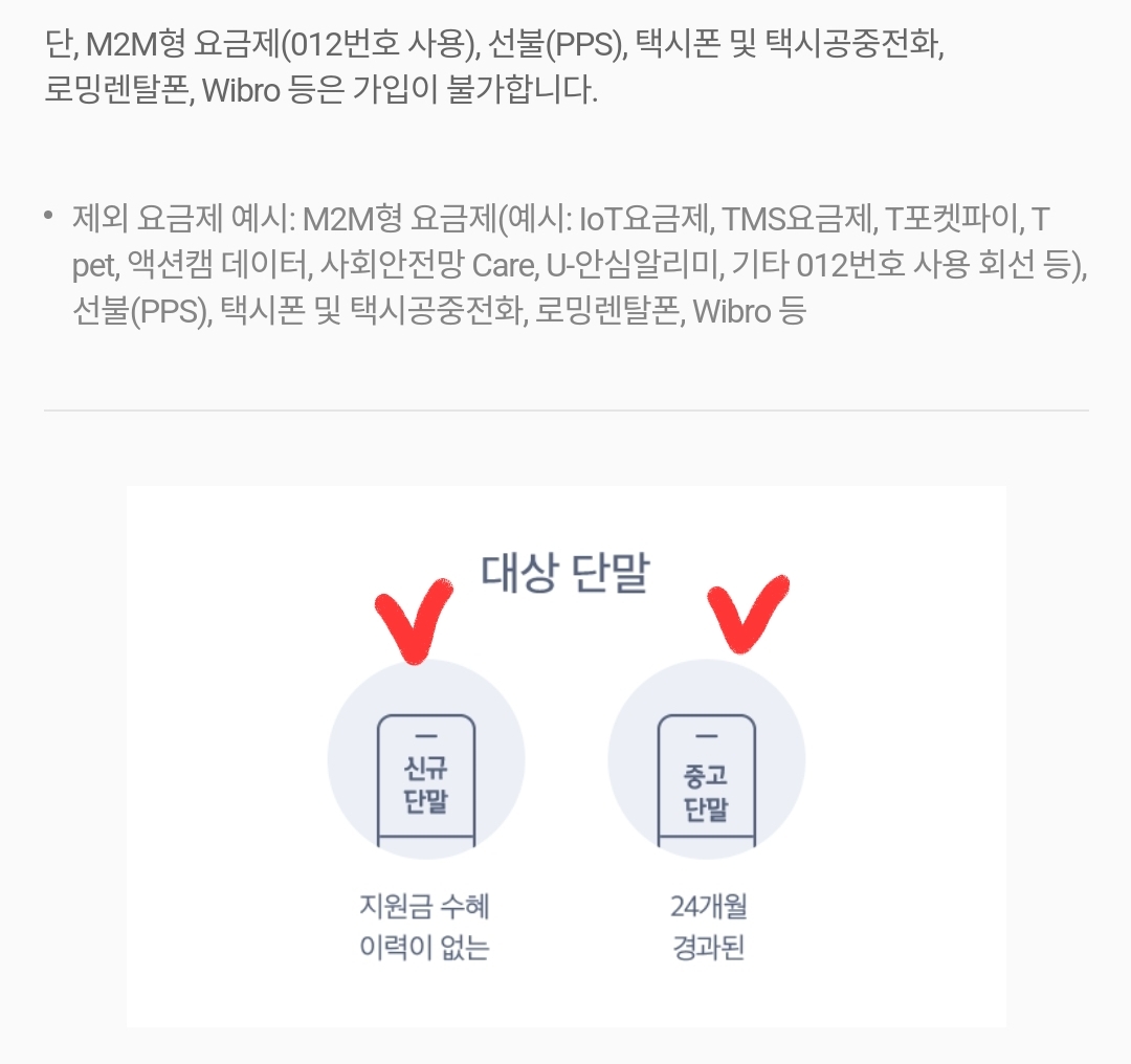 - 신규단말 이용고객: 지원금 이력 없어야함