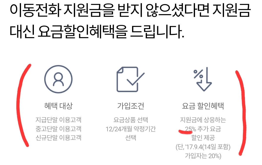 이동전화 지원금을 받지 않았나요? 단말기 구입 시 지원금을 받지 않았나요? 그렇다면 25% 요금 할인을 받을 수 있다고합니다.