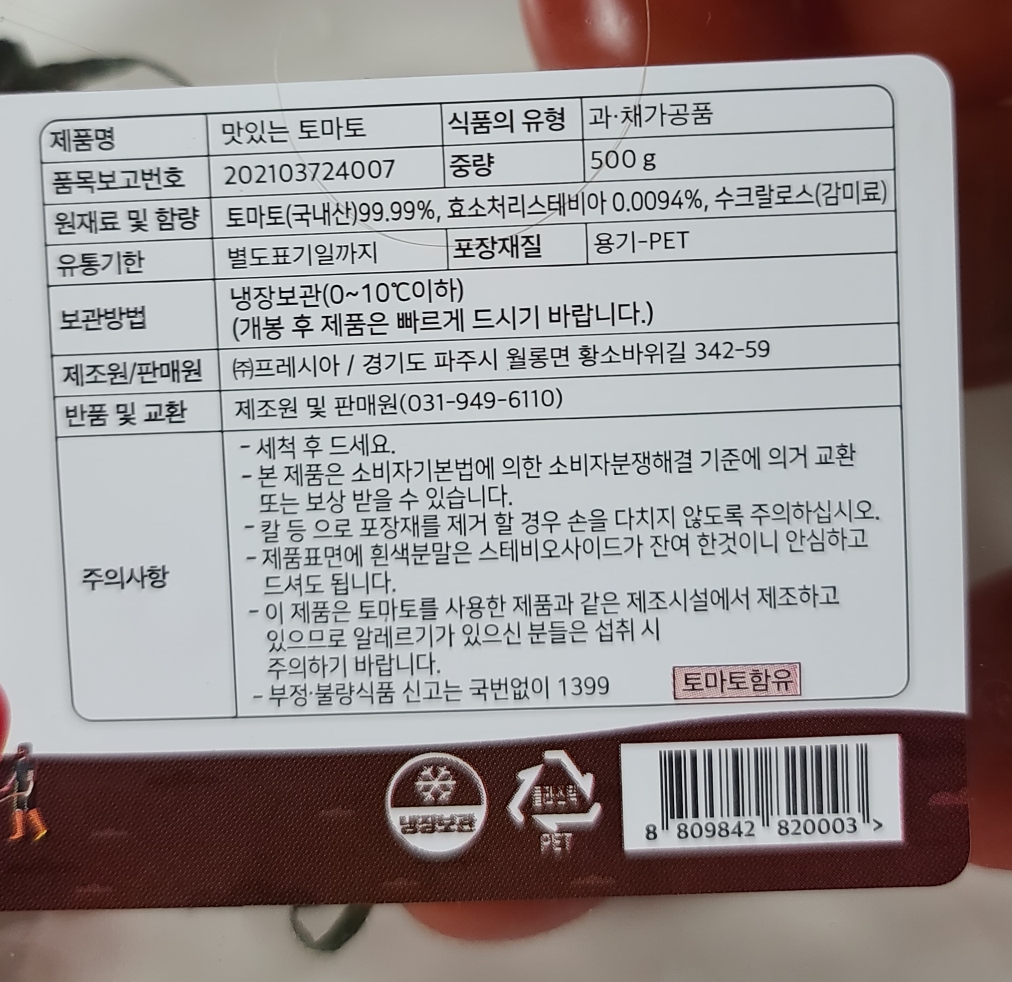 더불어 스테비아라는 설탕은 몸에 흡수가 안되는 설탕이라고해요. 그래서 달달한 맛이 느껴지는 스테비아 방울토마토를 먹어도 당류가 몸에 흡수되지않는답니다! 소변을 통해 배출되기 때문에 부작용은 걱정하지 않으셔도 될 것 같아요