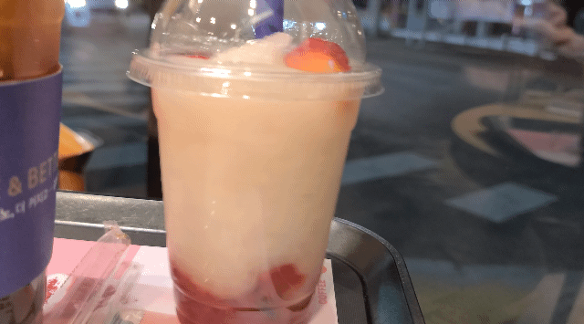 이디야 딸기 신메뉴 생딸기 핑크 플랫치노를 잘 섞어 주었습니다. 윗부분이 슬래쉬라 잘 섞이지 않을 수 있는데 어찌어찌 섞으면 잘 섞입니다. 정말 독특했던게 슬러쉬에서 밀키스 맛이 났어요. 섞지 않고 그냥 먹어도 맛있었습니다.