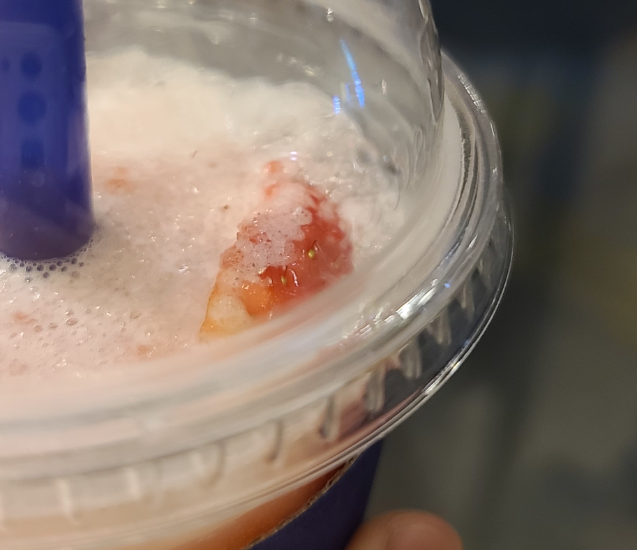 잘 섞어서 먹으니 탄산있는 딸기 에이드를 상큼한 슬러쉬로 만들어서 먹는 느낌이 납니다.