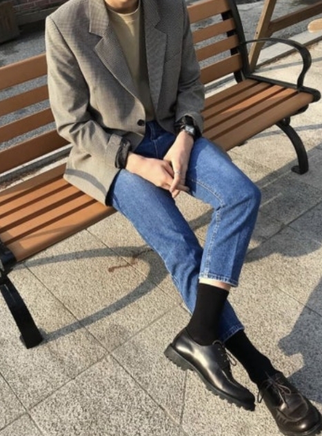 청바지에 검정 재킷을 걸쳐 단정하면서도 신경 쓴 듯한 느낌을 주는 하객룩도 좋습니다.