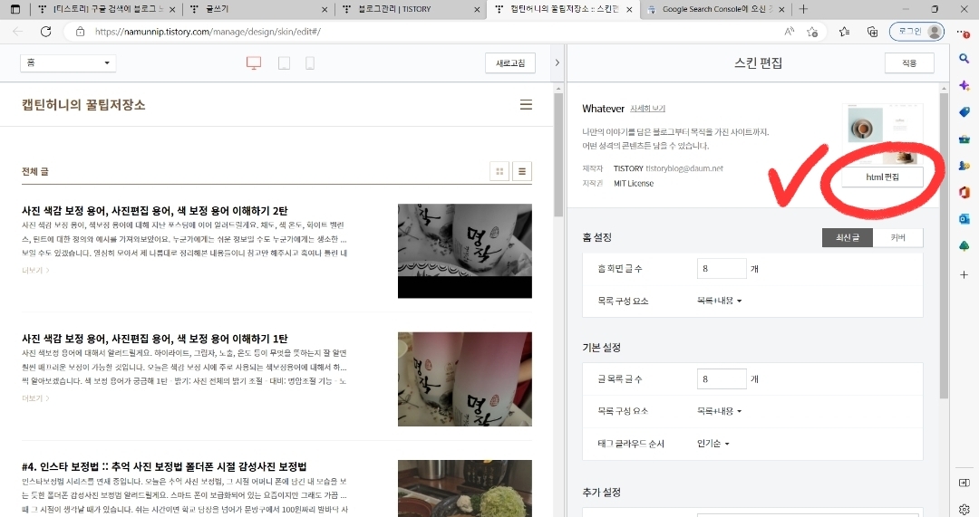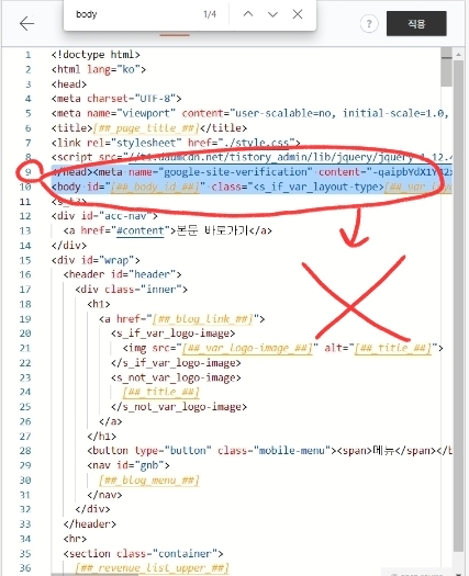 티스토리 구글 HTML 코드 복붙 위치