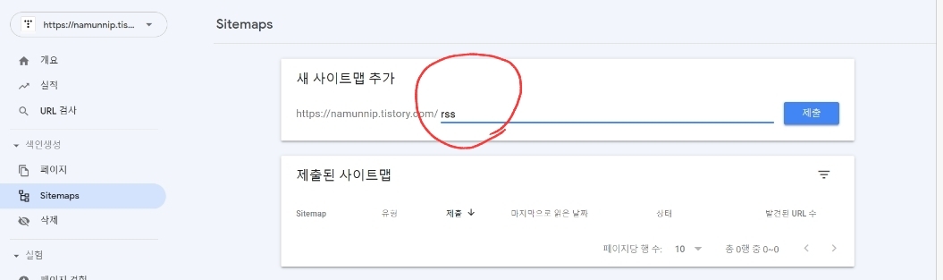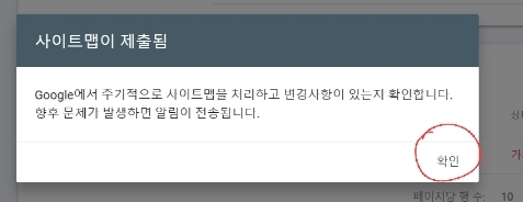 새 사이트맵이 제출되었다는 창이 뜬다면 완료입니다.