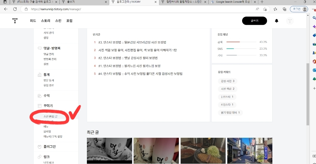 티스토리 설정 -&gt; 스킨편집