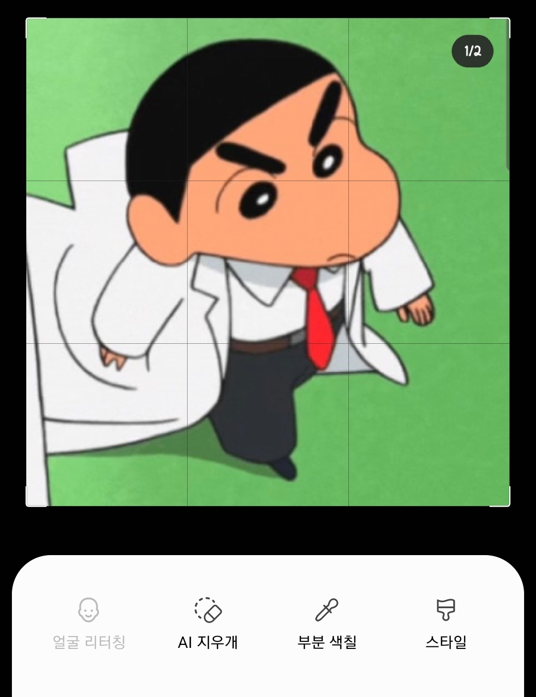 귀여운 짱구 사진을 가져왔어요. 인물뿐만 아니라 캐릭터도 보정이 될 지 궁금하더라고요.