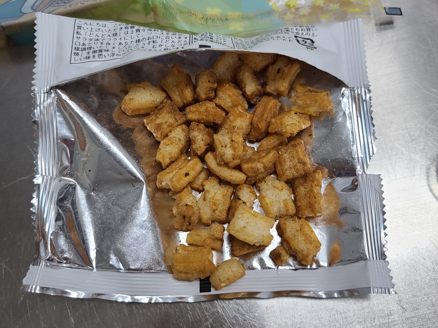 바삭한 튀김 과자에 야끼소바 소스와 향이 덧입혀진 맛이라 너무 맛있게 먹었답니다 :) 일식 주점에서 기본 안주로 내어줘도 좋을 것 같습니다.
