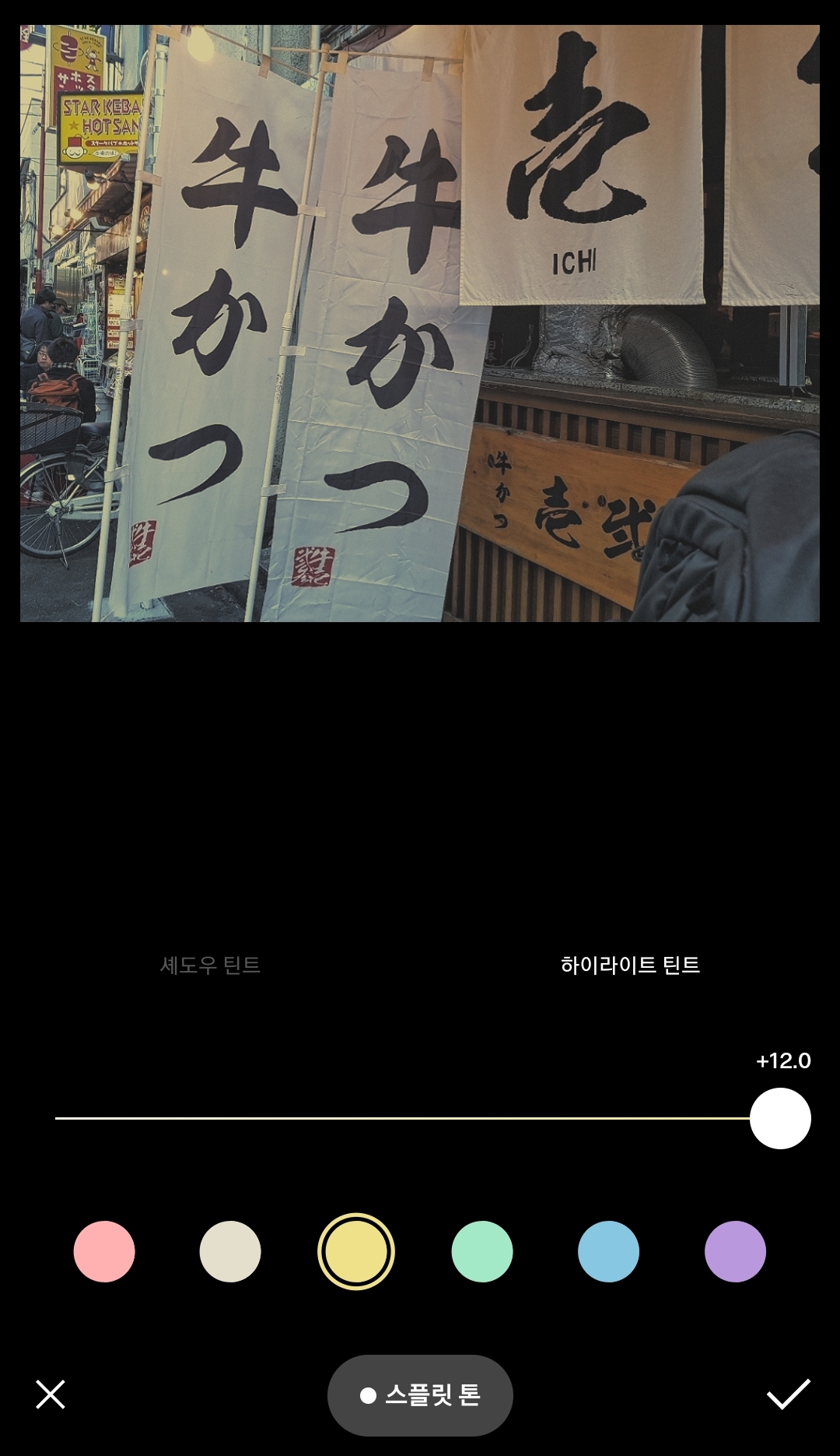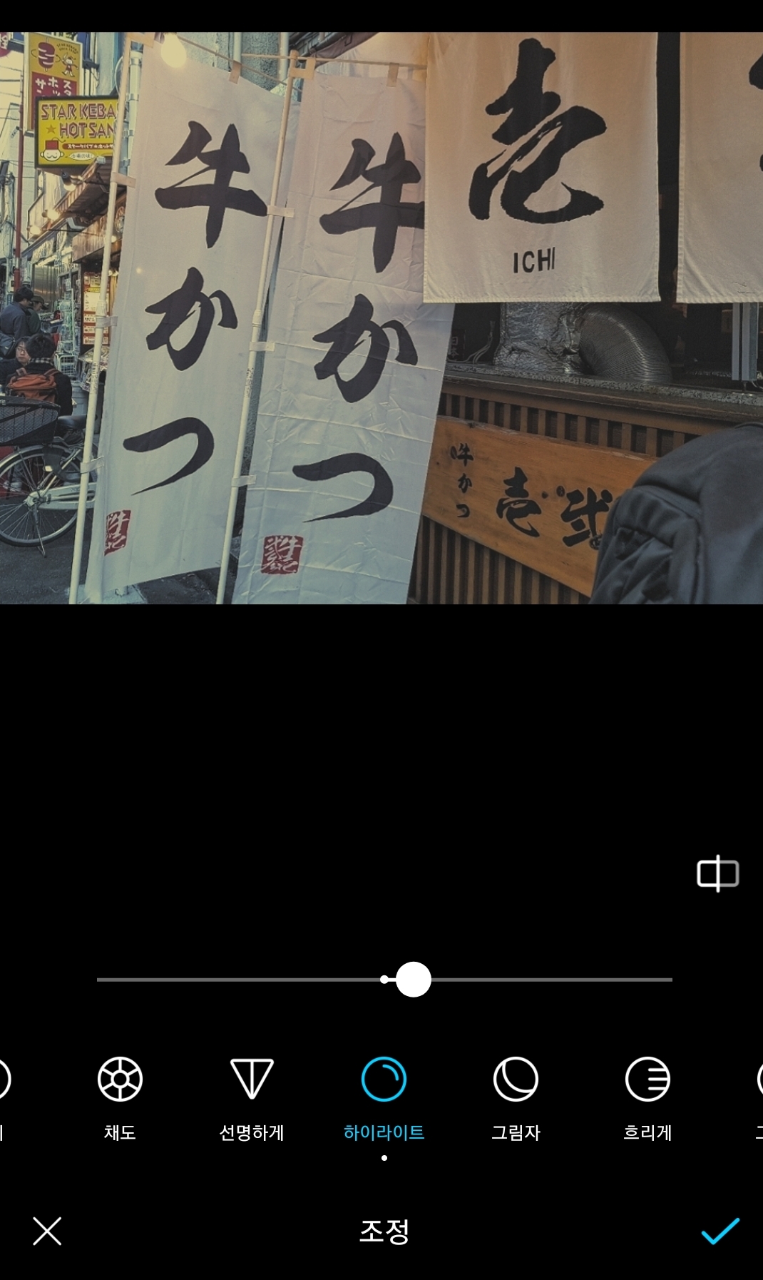 규카츠는 음식사진이라 온도를 5에서 30으로 확 올려보았습니다. 온도를 높이면 음식사진이 훨씬 먹음직스러워보이는 효과가 있지요. 온도를 올리니 사진이 훨씬 감성적으로 변했습니다.