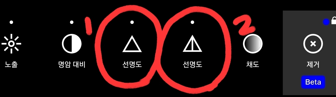 선명도는 2개를 사용할 건데요. 앞쪽의 선명도를 선명도 1, 뒷쪽의 반 갈라진 선명도를 선명도2라고 칭하겠습니다.