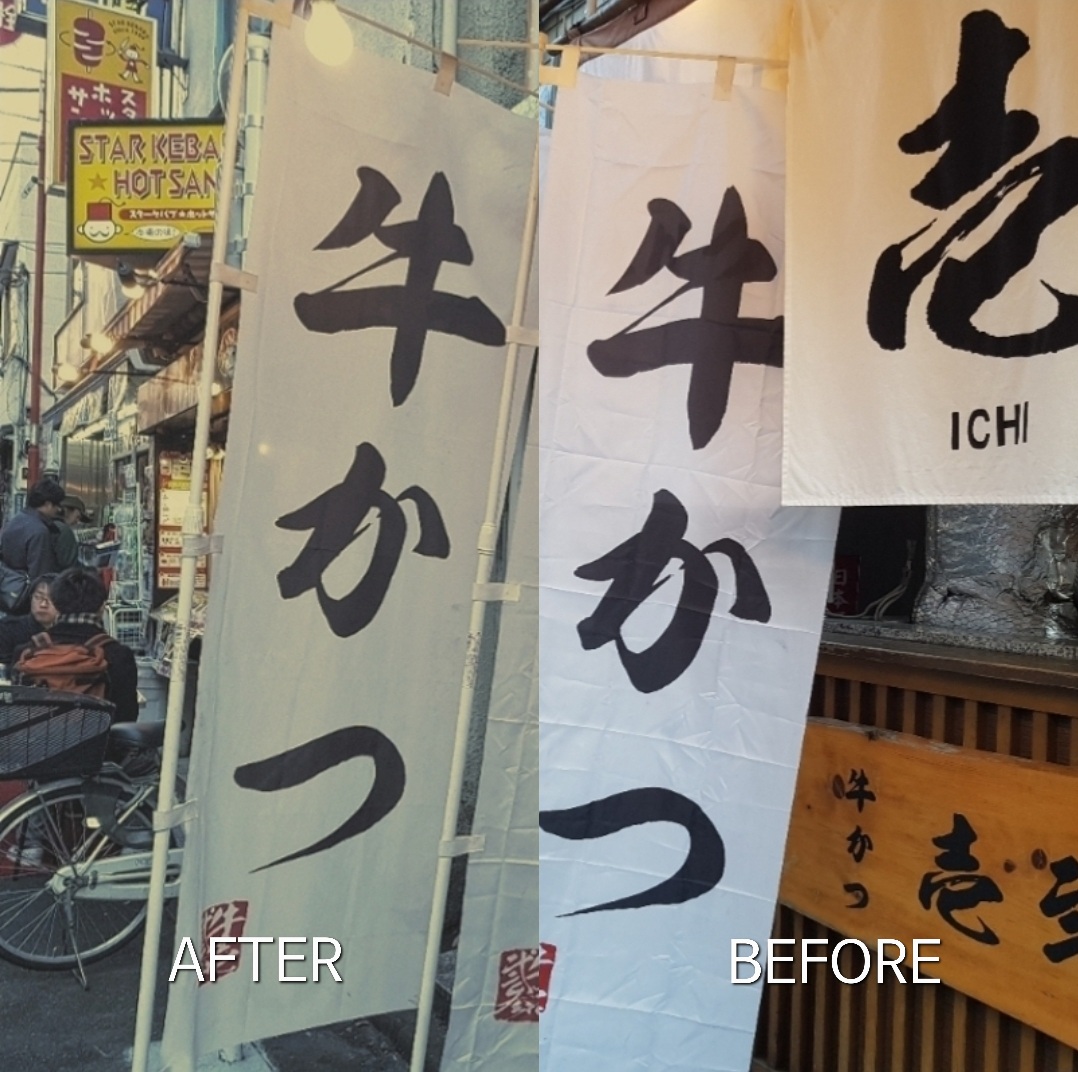 일본 감성사진 보정법에서 뽑아두었던 사진 하나만 더 우려먹을게요. 도쿄에서 먹었던 규카츠입니다. 어둑한 실내의 규카츠를 이 보정법으로 보정하면 어떻게 변할까요?