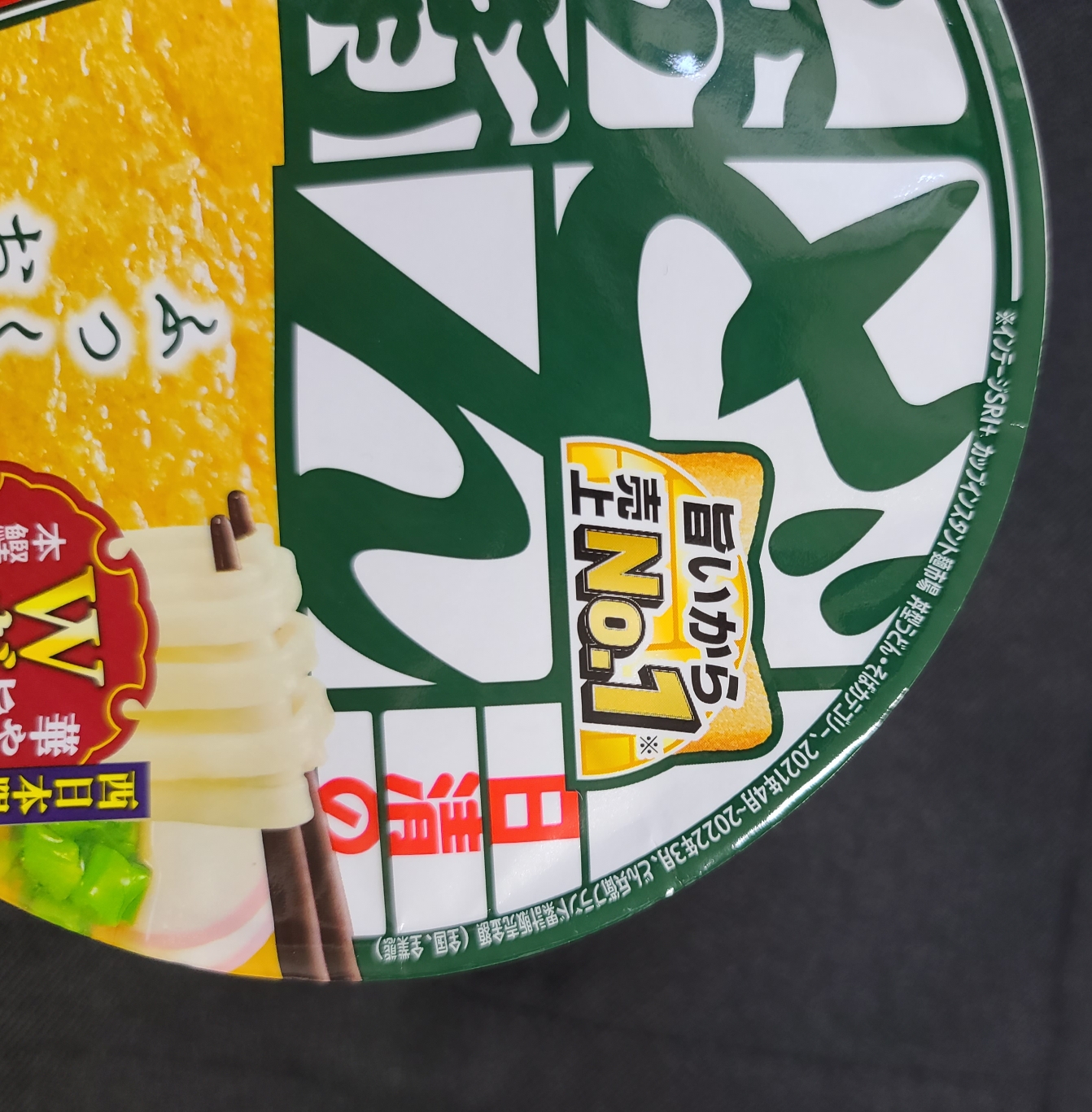 일본 유부우동 컵라면 닛신 돈베이 키츠네 유부우동 뚜껑에 커다란 유부가 사진으로 프린트되어 있어요. 맛있겠군요