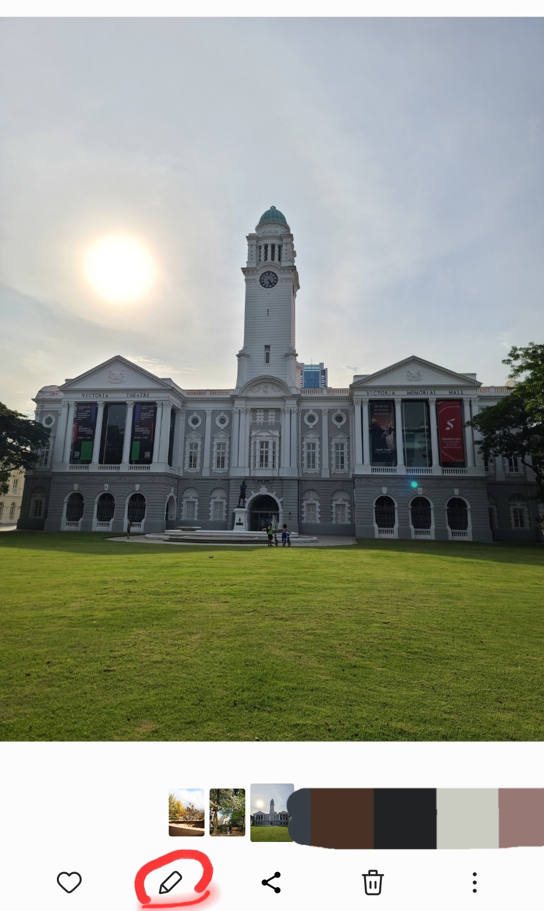 갤럭시 사진 보정법을 위해 포토에디터에 들어가주세요. 붉은색으로 표시를 해두었어요. 연필 모양 아이콘을 누르면 갤럭시에서 제공하는 기본 갤럭시 사진 보정 용 포토에디터에 접속할 수 있게됩니다.