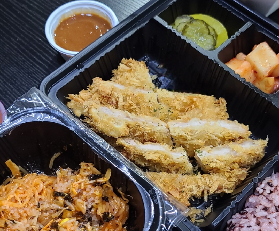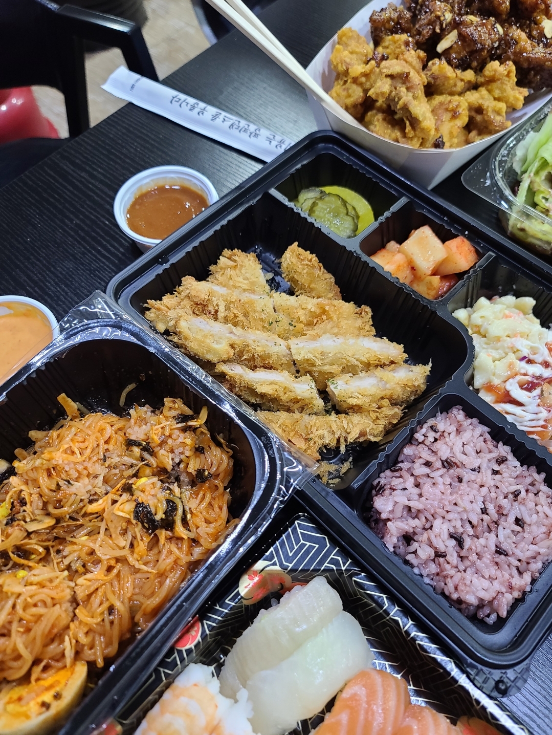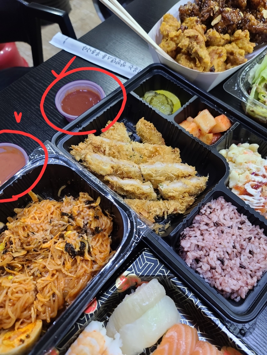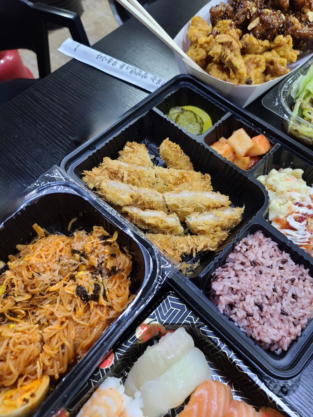 또 음식사진이예요 ㅋㅋ 집에서 돈까스와 쫄면 초밥을 주문해서 먹었어요.