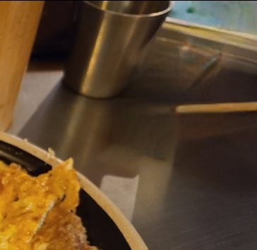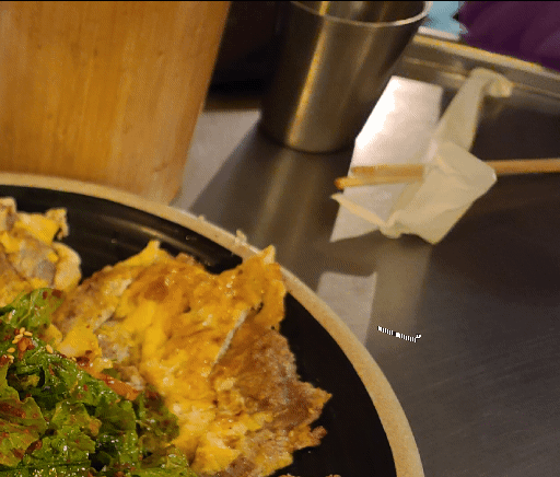 정답은 작은 돈까스 한 조각입니다. 확실히 굴곡이 있거나 물건끼리 맞닿아있는 부분의 결과물이 어색한 것 같습니다.