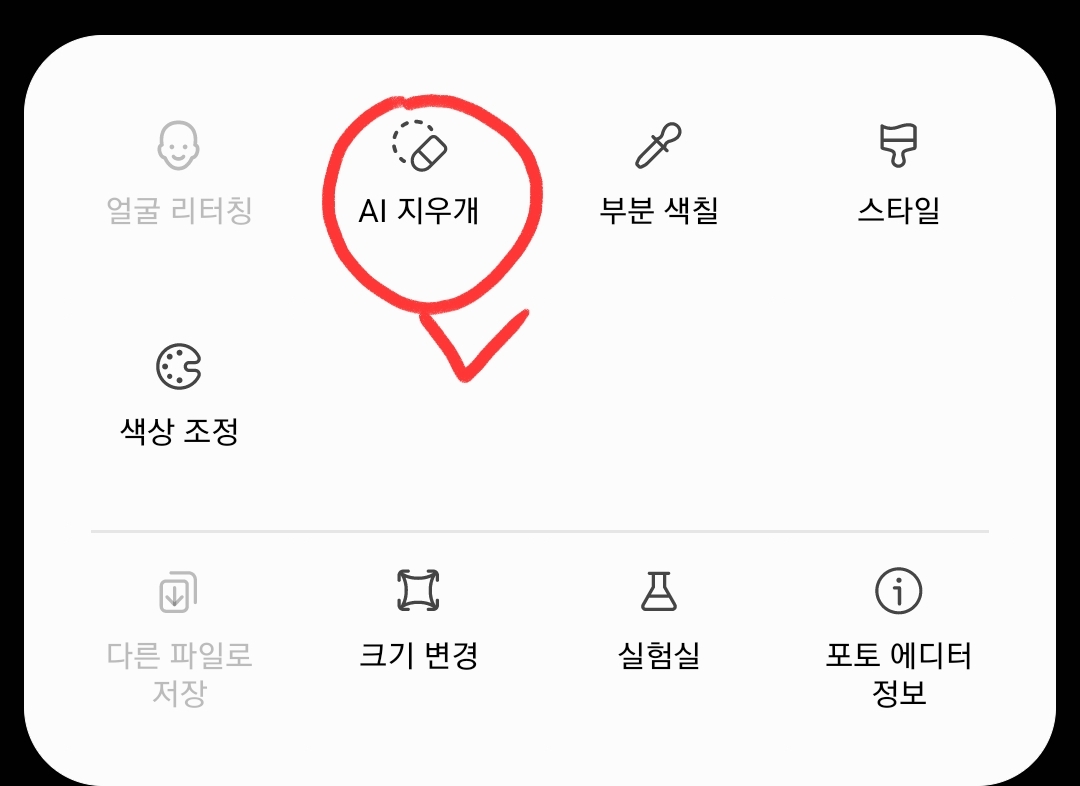 그러면 이런 화면이 뜹니다. AI지우개를 눌러주세요.