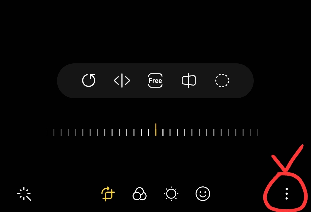 포토에디터를 실행한 뒤 나오는 화면입니다. 지금까지는 이 화면에서 모든 수치를 조정하며 사진을 보정했는데요. 오늘은 갤럭시에서 제공하는 포토에디터 AI기능을 이용해볼 것이라 다른 곳을 한 번 더 들어가야합니다.