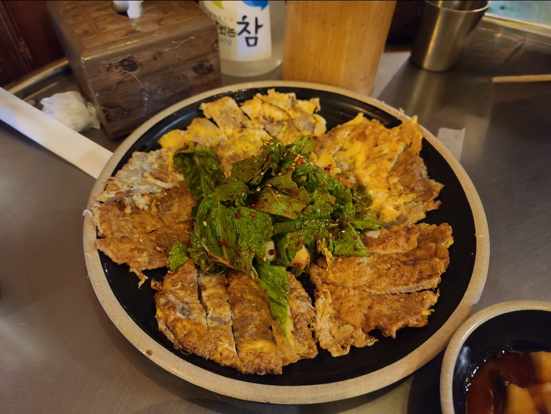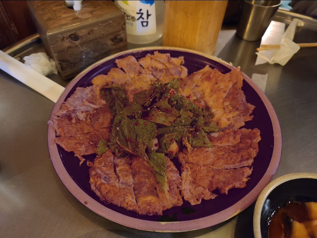 대구에 있는 막걸리집을 방문했는데요. 육전을 주문해보았습니다. 먹음직스럽게 찍힌 것이 마음에 드네요