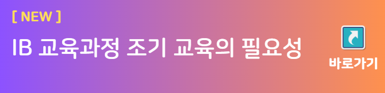 한국에서 가장 주목받는 과정은 고등학교과정인 IBDP인데요. 아주 어릴 때부터 IB교육을 하게 되면 교과 연속성과 사고의 유연성이 높아집니다. 조기교육을 생각 중이시라면 위의 바로가기를 참고하세요.
